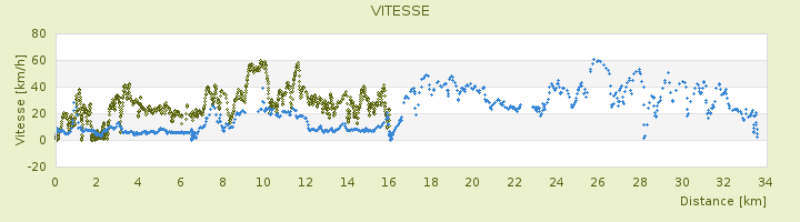 Vitesse moyenne (hors pauses) 16.2 km/h 14.3 km/h