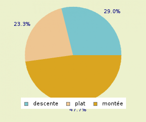 MONTEE: 4.66 Km/h PLAT: 3.75 Km/h DESCENTE : 7.68 Km/h
