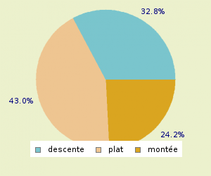 MONTEE: 10.55 Km/h PLAT: 16.42 Km/h DESCENTE : 15.57 Km/h