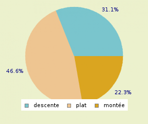 TOTAL: 10.96 Km/h MONTEE: 9.3 Km/h PLAT: 11.53 Km/h DESCENTE : 12.33 Km/h