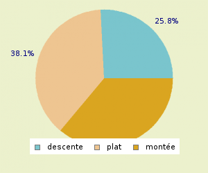 TOTAL: 38.71 Km MONTEE: 7.64 Km PLAT: 23.31 Km DESCENTE : 7.74 Km